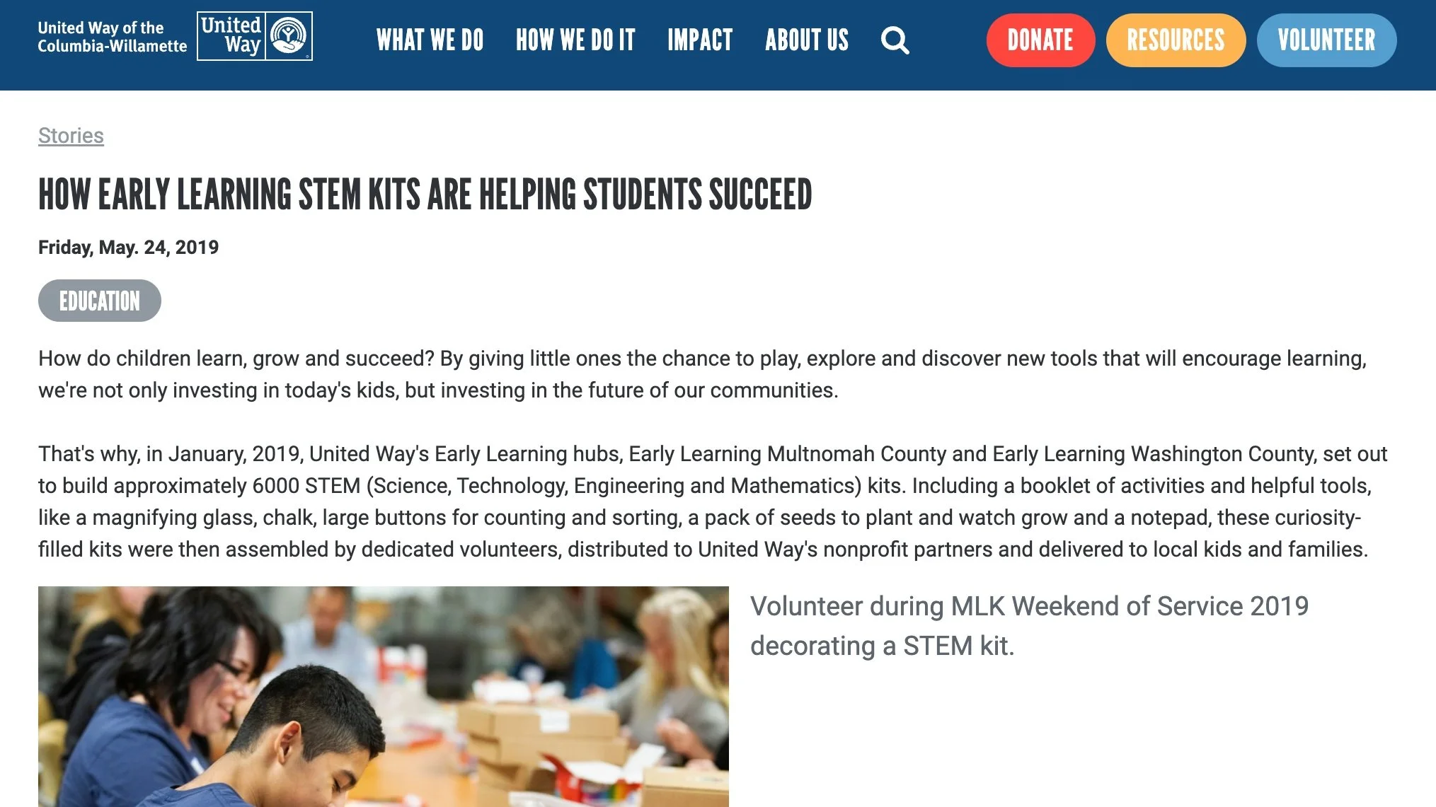 UNITED WAY OF THE COLUMBIA-WILLAMETTE: How Early Learning STEM Kits are Helping Students Succeed